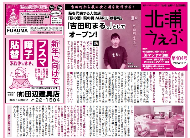 年末年始が近づいて参りましたね。みんなで萩に帰省して、家族との時間、友達との再会、ぜひ楽しんでくださいね。